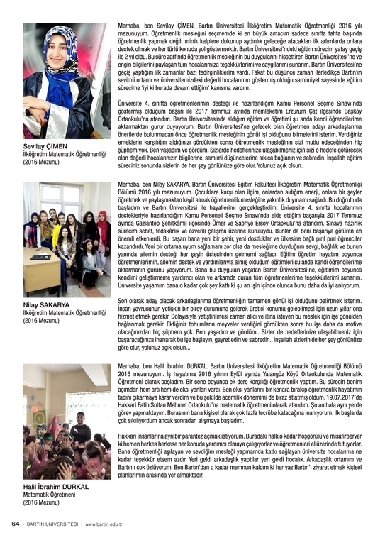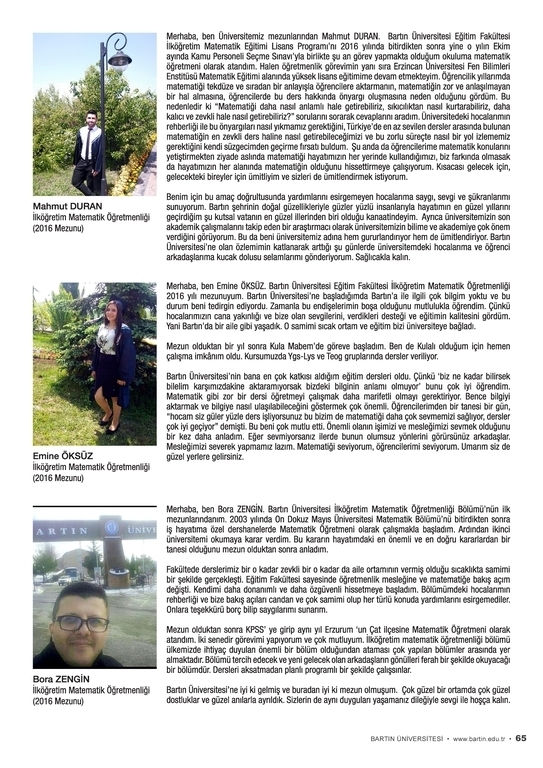 Anabilim dalımız 2016 yılından itibaren mezun vermektedir. Ülkemizin dört bir yanında öğretmenlik yapan öğrencilerimiz öğretmen adayı arkadaşlarını, hocalarını unutmadılar. Burada geçirdikleri güzel günleri anmak adına mektup yazdılar.